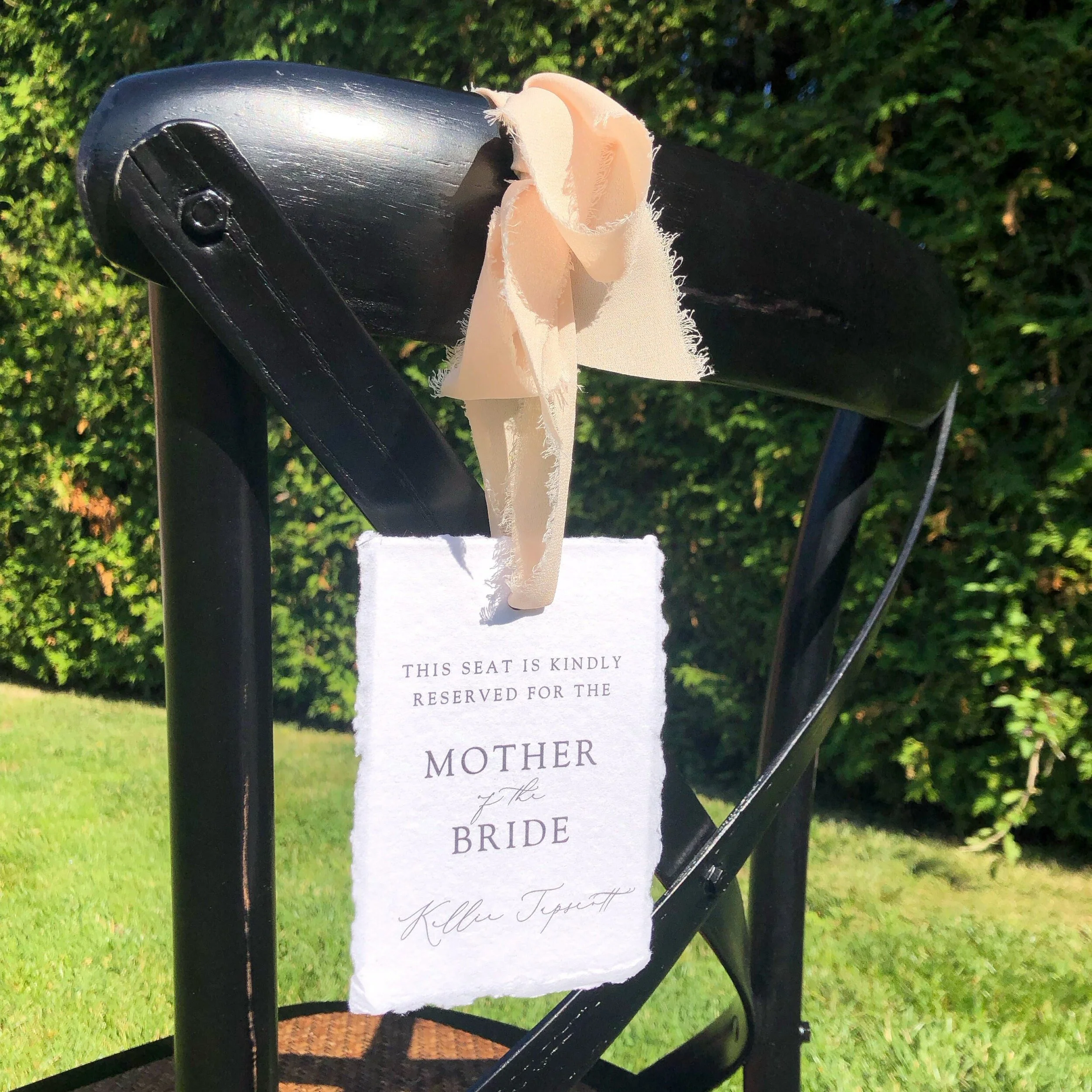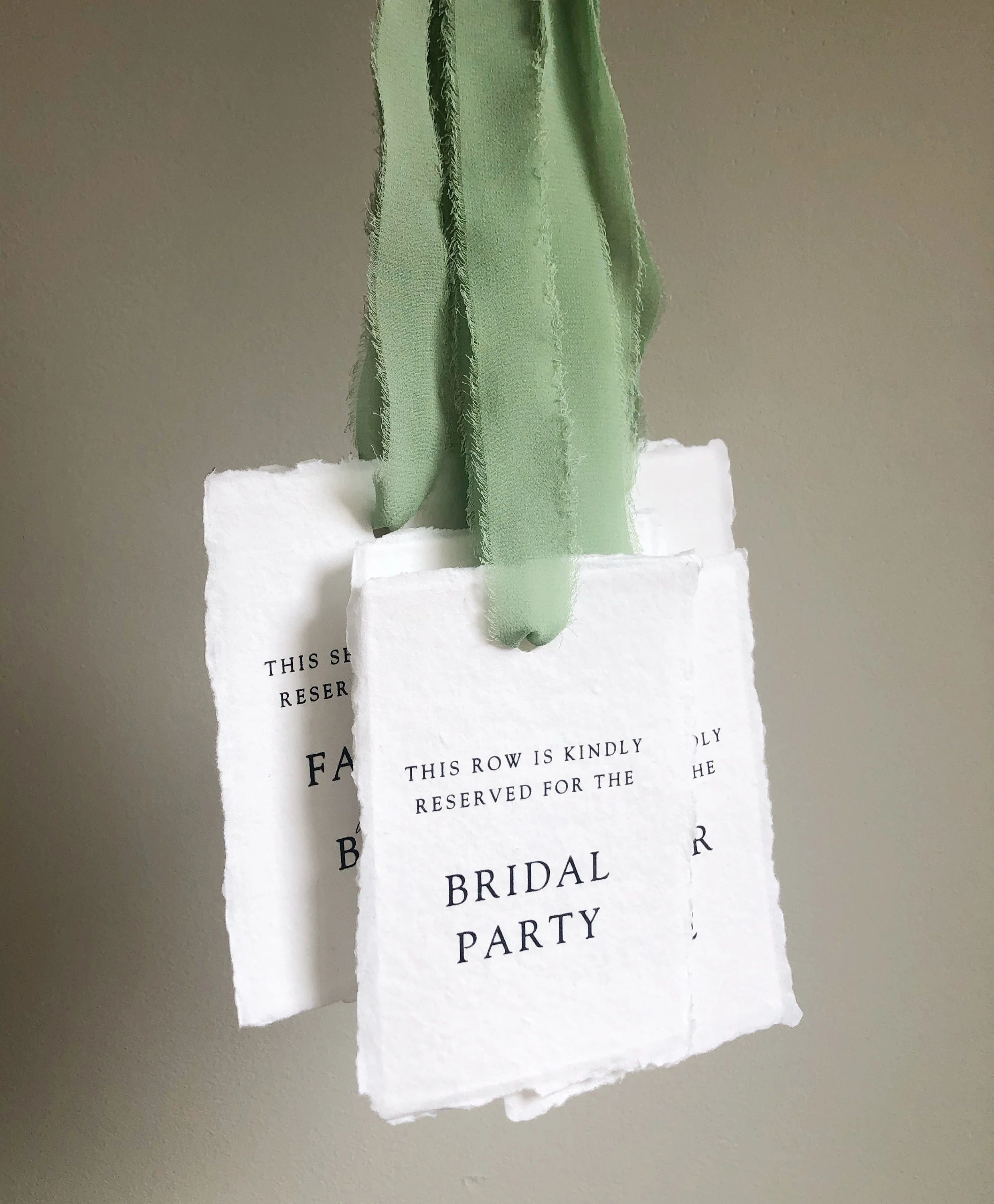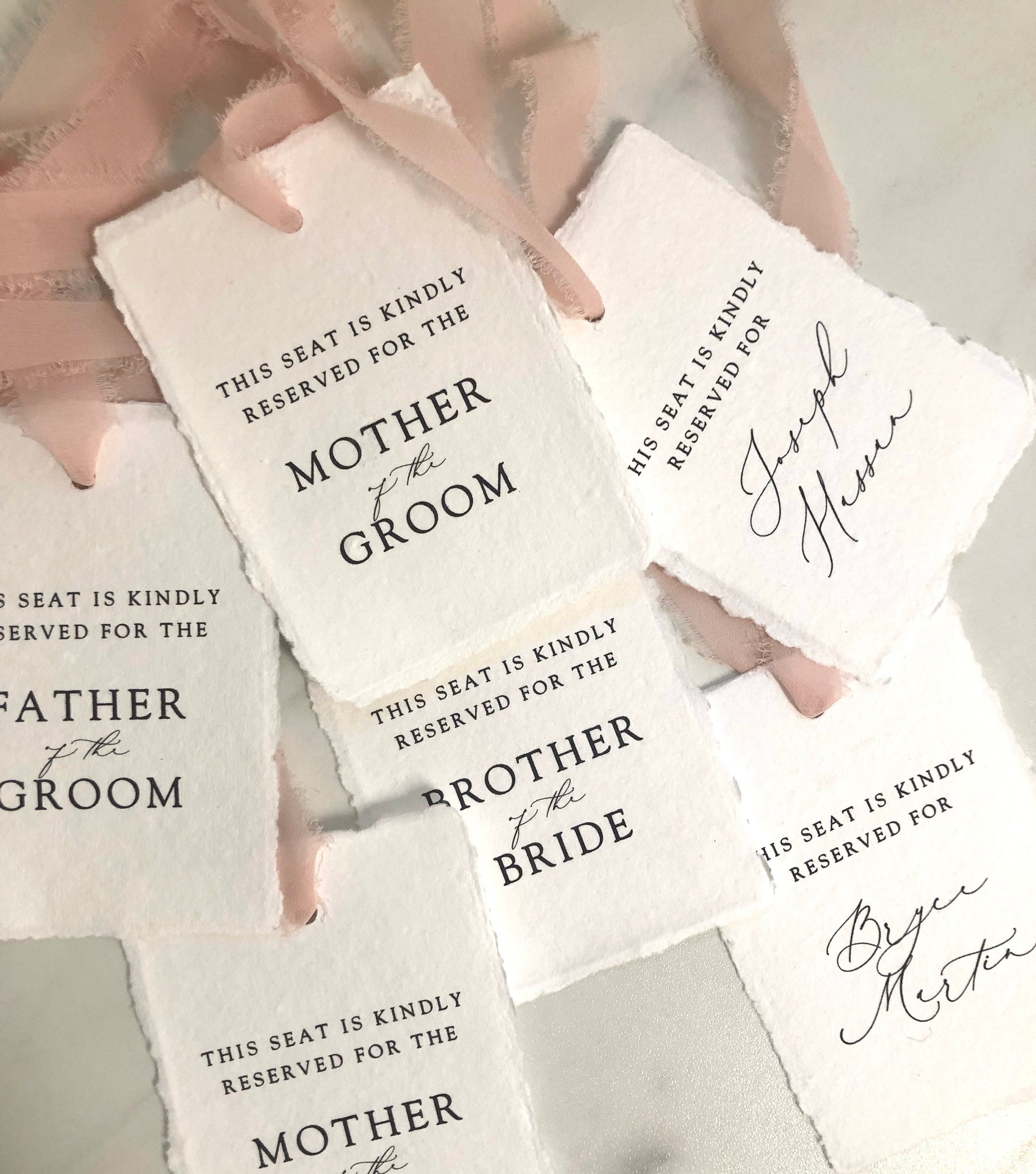 Reserved seating tags are available in either 3.5x5 inch or 4.5x6.25 inch deckled edge cotton rag paper. Cards can be personalized to include the names of your VIP guests at the bottom (as shown in the photos) so please add all those details in the form that will pop up after you “add to cart”.